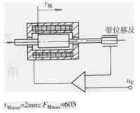 由于磁路結(jié)構(gòu)的特點,使之具有如圖6. 49b所示的幾乎水平的電磁力一行程特性,這有助于閥的穩(wěn)定性。圖6—49所示的電磁鐵的輸出是電磁推力,故稱為力輸出型,還有一種帶位移反饋的-FM位置輸出型比例電磁鐵,如圖6-50所示。后者由于有銜鐵位移的電反饋閉環(huán),因此當(dāng)輸入控制電信號一定時,不管與負(fù)載相匹配的比例電磁鐵輸出電磁力如何變化,其輸出位移仍保持不變。所以它能抑制摩擦力等擾動影響,使之具有極為優(yōu)良的穩(wěn)態(tài)控制精度和抗干擾特性。