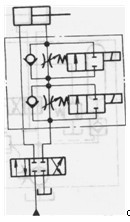 圖3 .2-5a,b的回路一個行程只有兩種速度,如在圖3.2- 5b的基礎上再加一組換向閥與單向節(jié)流閥,則一個行程可以改變三種速度,如圖3.2- 5c所示。
