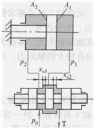 圖6- 40b為雙邊滑閥控制式,它有兩個控制邊。壓力油一路進入液壓缸左腔,另一路經滑閥控制邊戈。,的開口和液壓缸右腔相通,并經控制邊xs2的開口流回油箱。當滑閥移動時,xs1增大,xs1也減小,或相反,這樣就控制了液壓缸右腔的壓力,因而改變了液壓缸的運動速度和方向。