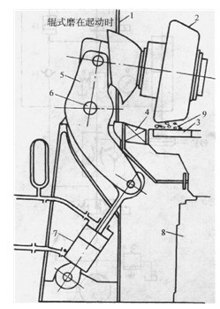 7-液壓缸8-傳動裝置9-被粉磨的物料