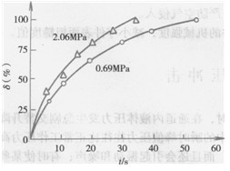石油基液壓油在靜止?fàn)顟B(tài)下空氣的溶解度與時(shí)間的關(guān)系如圖3-37所示,它反映了溶解