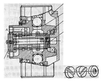 配流軸的軸向位置由左端小套中的彈簧5確定,彈簧力量很弱,不會影響配流軸的浮動作用。