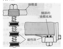 2)為了防止油液污染起見,油箱上各蓋板、管口處都要妥善密封。注油器上要加濾油網。防止油箱出現(xiàn)負壓而設置的通氣孔上須裝空氣濾清器??諝鉃V清器的容量至少應為液壓泵額定流量的2倍。油箱內回油集中部分及清污口附近宜裝設一些磁性塊,以去除油液中的鐵屑和帶磁性顆粒(見圖7-7)。