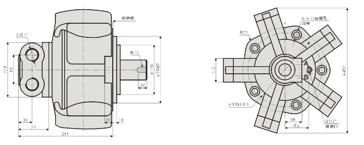 YLM11-700~1300外五星液壓馬達(dá)安裝聯(lián)接尺寸圖