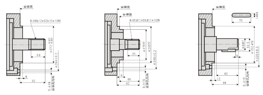 標(biāo)準(zhǔn)外花鍵:YLM11-** 標(biāo)準(zhǔn)平鍵:YLM11-**B 標(biāo)準(zhǔn)內(nèi)花鍵:YLM11-**I